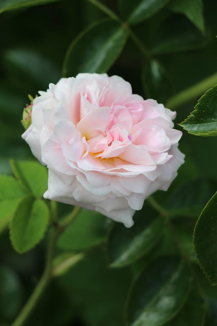 On the arch grows the most fragrant roses, a combination of Blush Noisette and Zephirine Drouhin Climbing Roses.