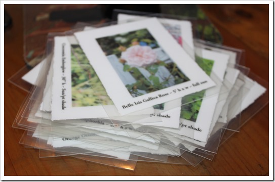 However, since plants are not always in bloom and it’s hard for folks to remember what I rattle off to them while we chat, I decided a few laminated photo’s might help me and my guests a little better. So that was my project today!